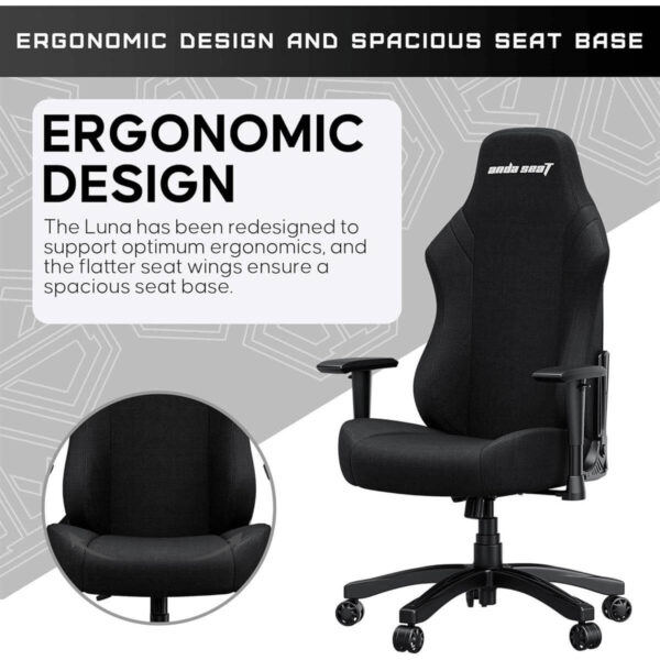 Upgrade your comfort zone with the Anda Seat Luna Large Fabric Gaming Chair in elegant black, crafted for gamers and professionals who demand long-lasting support.