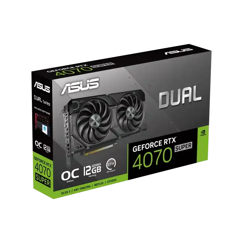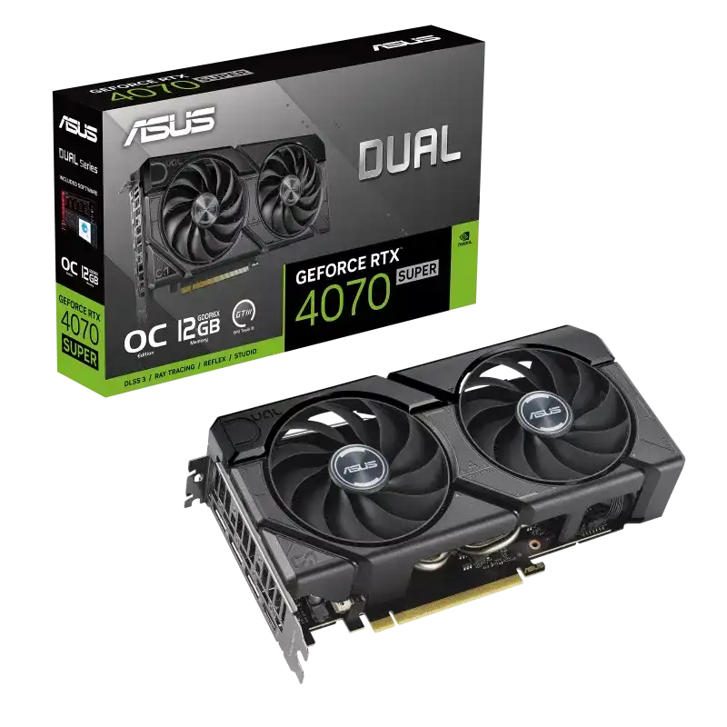 The ASUS Dual GeForce RTX 4070 SUPER EVO OC Edition 12GB GDDR6X combines powerful performance with cutting-edge NVIDIA Ada Lovelace architecture. Featuring 12GB of high-speed GDDR6X memory, advanced ray tracing, DLSS 3, and efficient dual-fan cooling, it’s perfect for gaming and creative workflows.