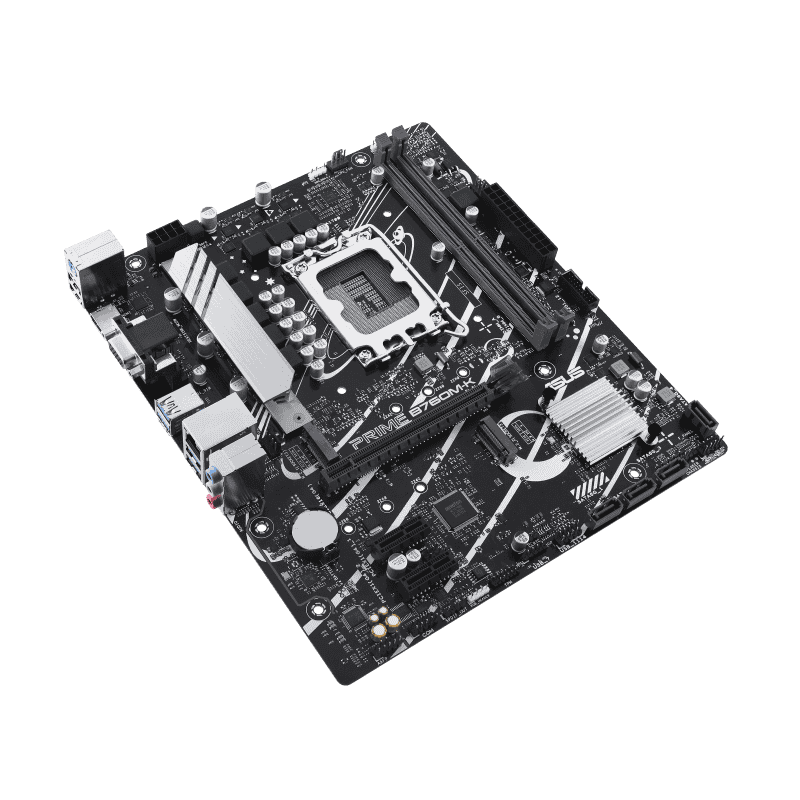 The ASUS Prime B760M-K is a compact and feature-packed micro-ATX motherboard designed for Intel’s 12th and 13th Gen processors. It delivers solid performance with support for PCIe 4.0, high-speed memory, and a range of connectivity options. Ideal for users seeking a reliable, cost-effective solution for building a versatile PC for work, gaming, or general use.