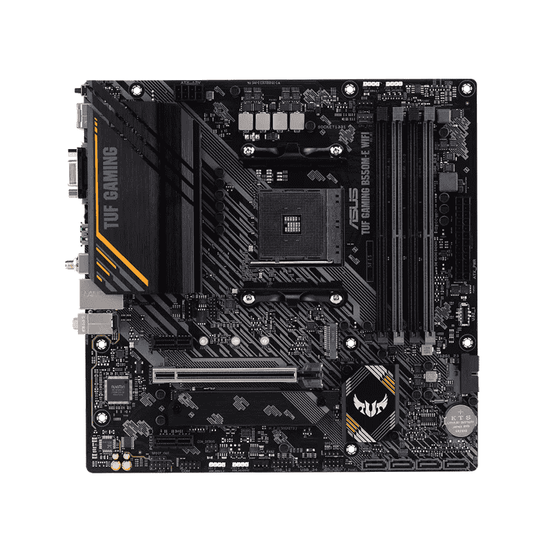 The ASUS TUF Gaming B550M-E WiFi motherboard delivers a high-performance foundation for your next gaming rig. Designed with military-grade components and powered by the AMD B550 chipset, it supports the latest AMD Ryzen™ processors and offers powerful features tailored for competitive gaming and productivity.