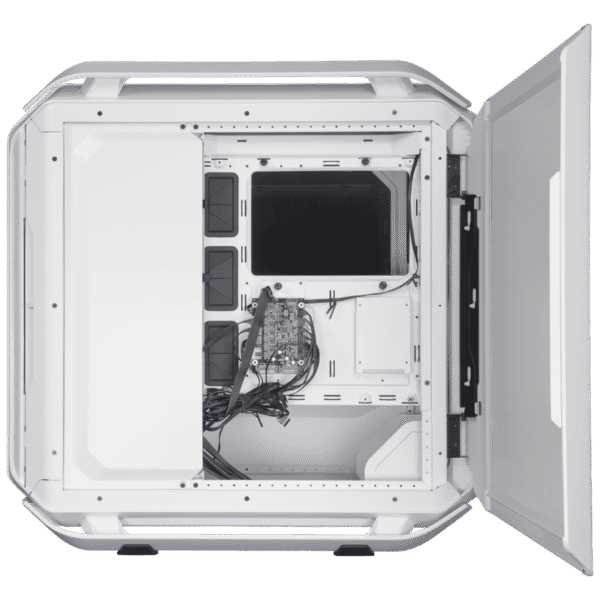 The Cooler Master Cosmos C700M ARGB Full-Tower ATX Case in White offers unmatched versatility and elegance for premium PC builds. Featuring customizable ARGB lighting, a curved tempered glass panel, and extensive cooling support, it accommodates E-ATX motherboards and advanced configurations. Its modular design ensures both style and performance for enthusiasts.