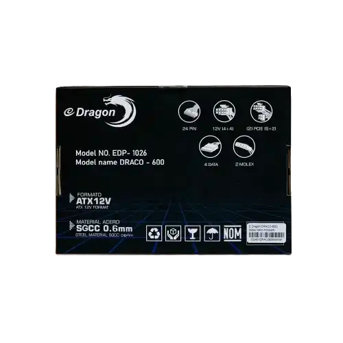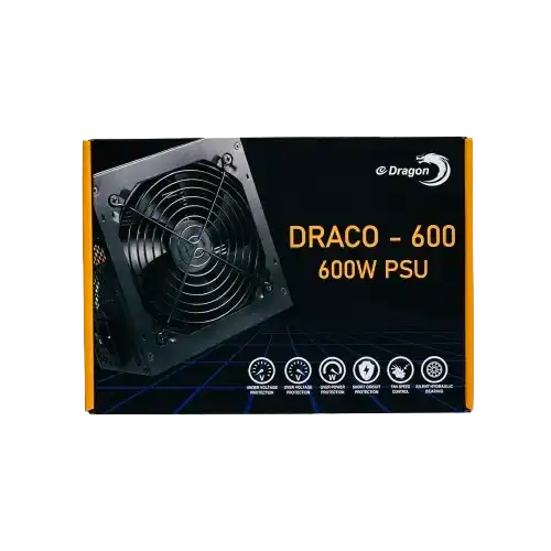 The E-Dragon Draco 600W Power Supply provides reliable and efficient power for gaming and general-purpose desktops. With a 600W output and 80 PLUS certified efficiency, this PSU ensures stable voltage regulation and energy-saving performance. It comes equipped with essential safety protections, a silent cooling system, and broad compatibility, making it an ideal choice for users seeking a cost-effective yet high-quality power supply for their PC builds.