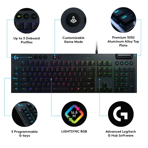 - Convenient Functionality: Use programmable G-keys and onboard profiles to enhance control and customization, making the G813 your ultimate gaming command center.