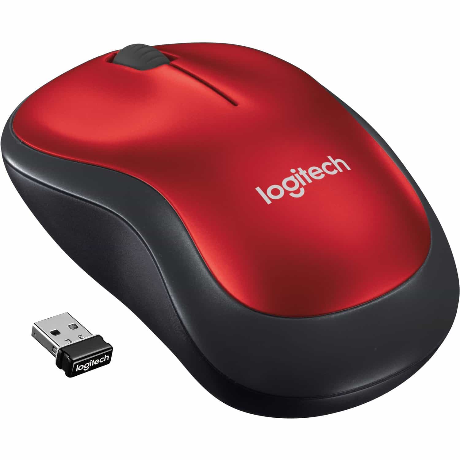 The Logitech M185 Wireless Mouse in red offers a compact, comfortable design with reliable wireless connectivity. Perfect for everyday use, it provides smooth tracking and long battery life, making it an excellent choice for both home and office environments.