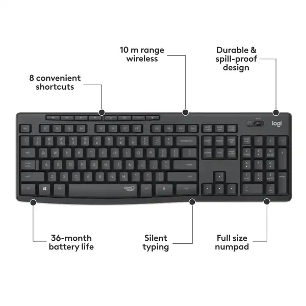 - Long-Lasting Battery Life: Up to 36 months for the keyboard and 18 months for the mouse.