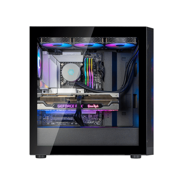 - ARGB Lighting: Includes four 120mm ARGB fans (three front, one rear) for captivating lighting effects.