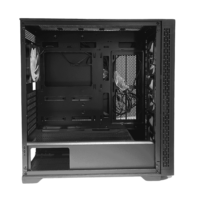 - Tempered glass side panel and front mesh design for enhanced aesthetics and cooling.